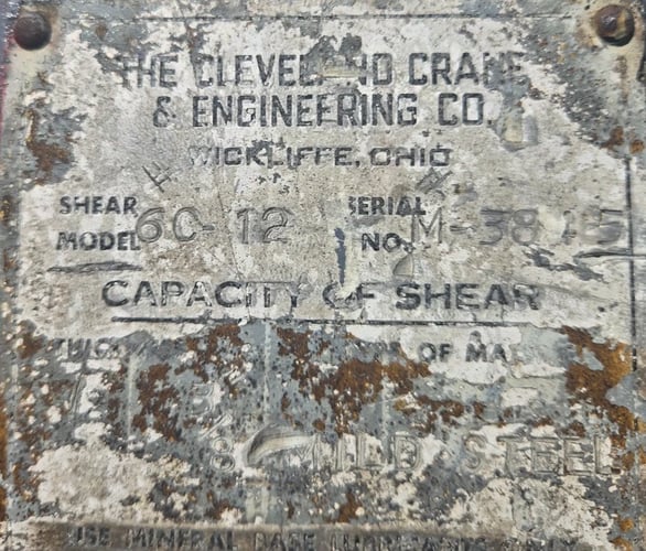 1/2" x 12' Steelweld #6C-12, power mechanical squaring shear