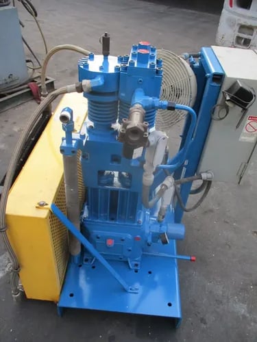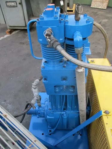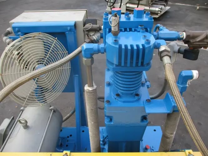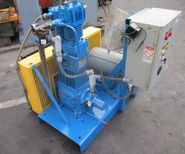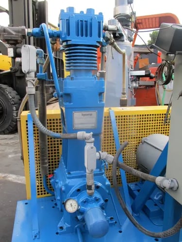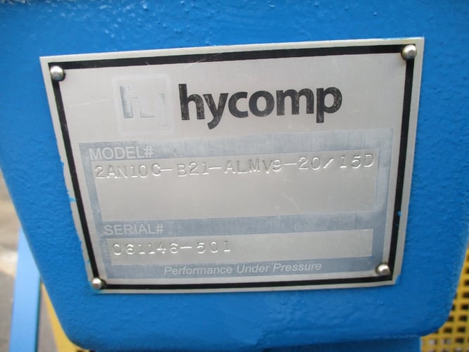 HyComp 20hp booster compressor model 2AN10C-B21-ALMV9-20/15T (Quicy Odyssey) HyComp is owned by Quincy and the specs for this can be found on their site. It takes low pressure inert gas or air and boosts it for high pressure required for laser cutting or other similar applications.