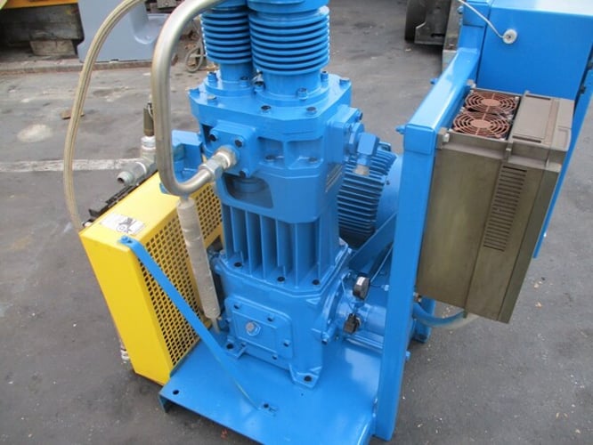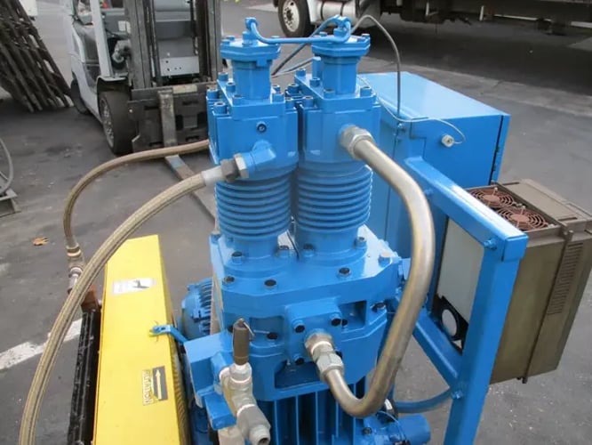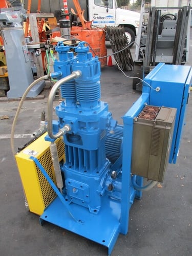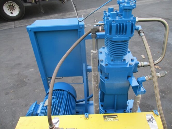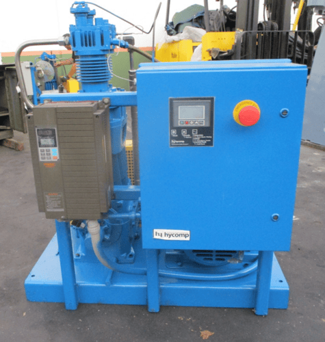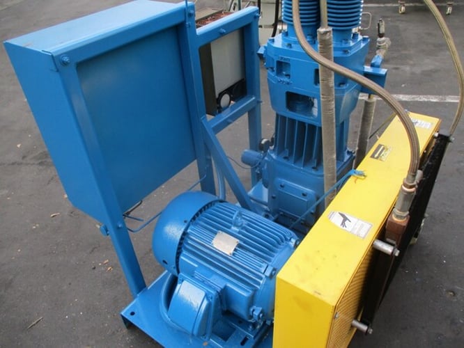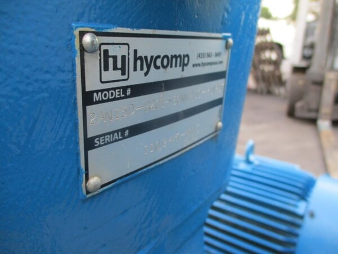 HyComp 20hp booster compressor model 2AN15D-B201-BLMVA-20/20T (Quicy Odyssey model QDS060). HyComp is owned by Quincy and the specs for this can be found on their site. It takes low pressure inert gas or air and boosts it for high pressure required for laser cutting or other similar applications.