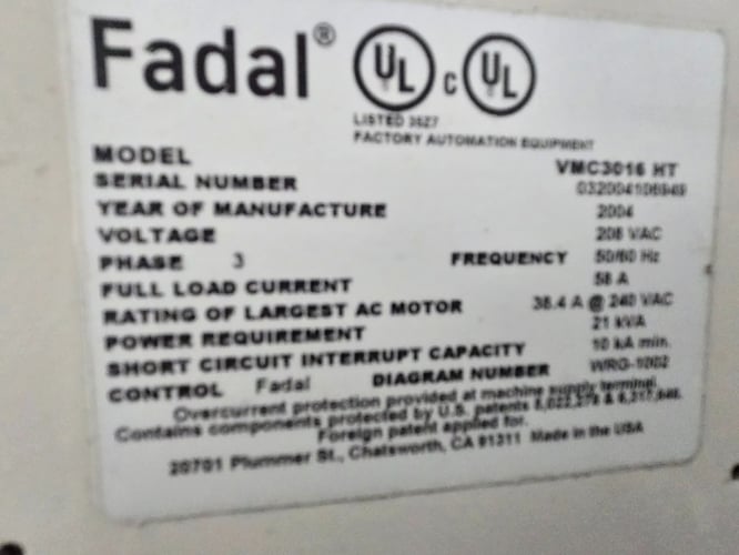 The NICE Fadal VMC 3016HT is a Machining Center specifically designed for milling tasks. Make: Fadal. Model: VMC 3016HT. Tool Capacity: 21 Station. Year: 2004. Equipped with.