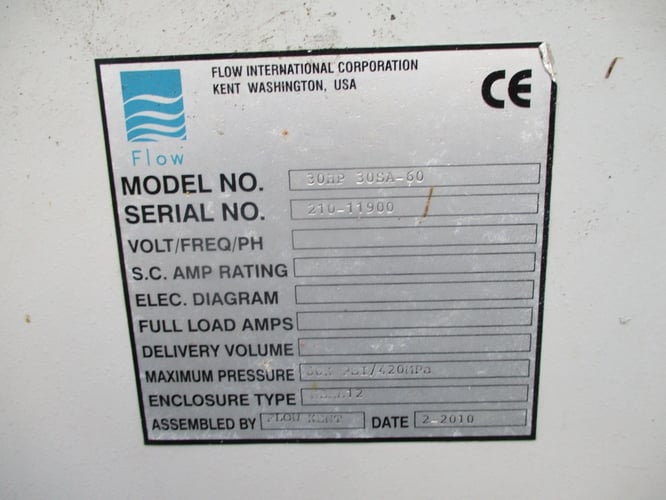 Flow, WaterJet Cutter w/Hydraulic Powered Intensifier, 30 HP, 60000 psi