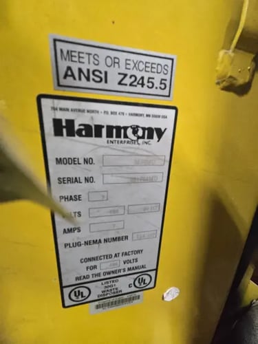 The HARMONY M60MD Baler GPI Cardboard Box Vertical Compactor is a reliable and efficient material handling solution designed for industrial use. With its low 8' clearance, this compact baler is ideal for managing cardboard boxes with ease. The brand Harmony is known for producing high-quality equipment, and the M60MD model is no exception. This vertical compactor is a valuable addition to any business or industrial setting looking to streamline material handling processes.
